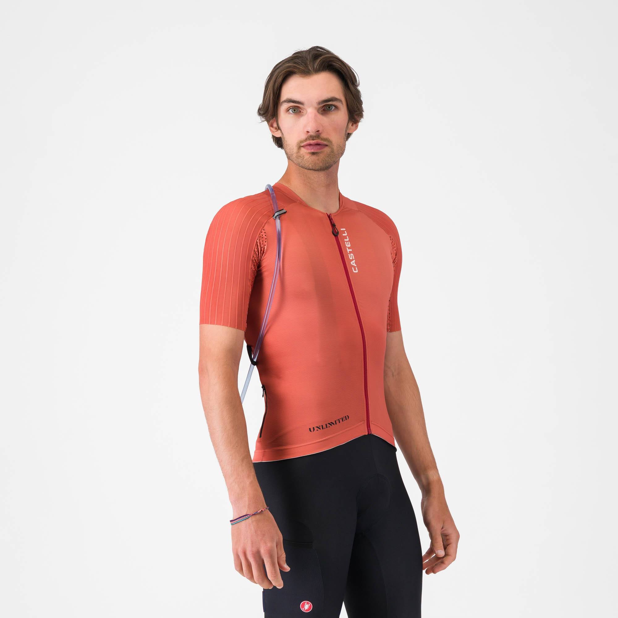 - Castelli-engineered Air_O Stretch fabric on body for breathability, comfort, and performance