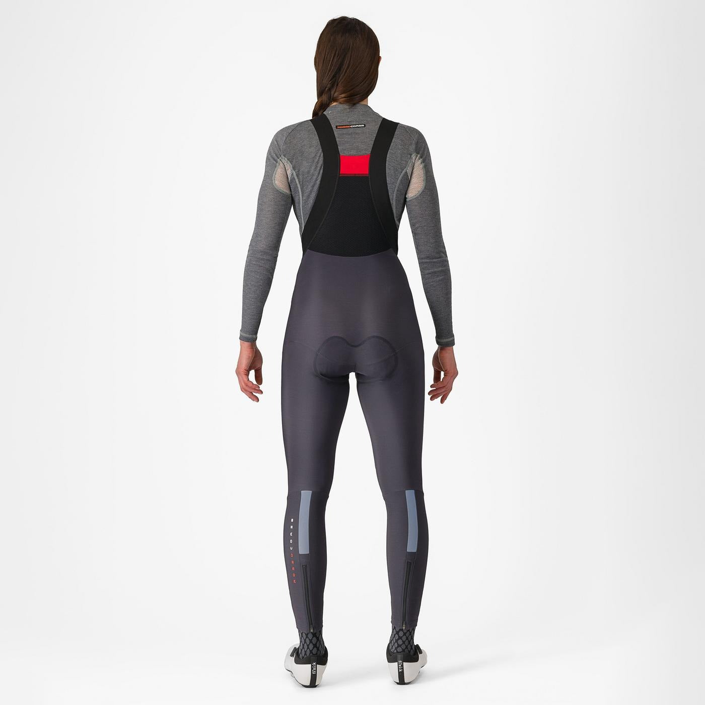 The Bibtight uses Castelli’s women’s specific Progetto X2 Donna seat pad, ideal for long hours in the saddle. This pad features two isolated layers that work in tandem with your body and saddle to eliminate friction while still offering substantial cushioning where it’s needed most.