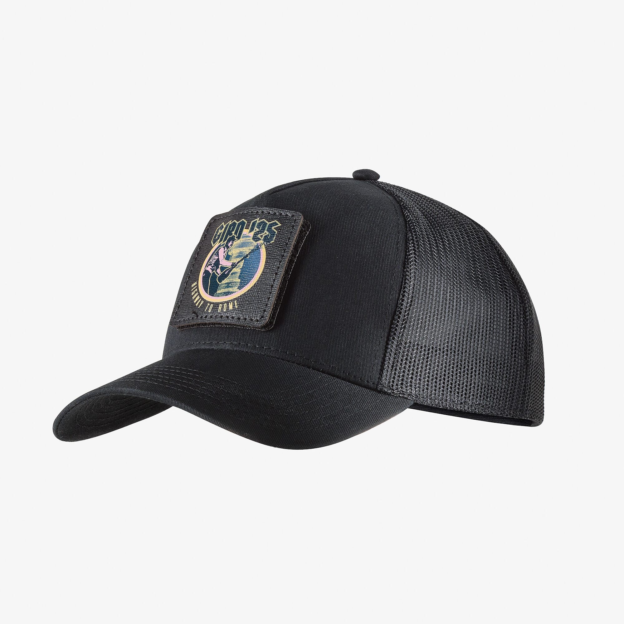 The Highway To Rome Trucker Cap, which parodies ACDC's hit “Highway to Hell”, features a removable Velcro patch with a concert-style graphic depicting the winners' podium and the Trofeo Senza Fine.