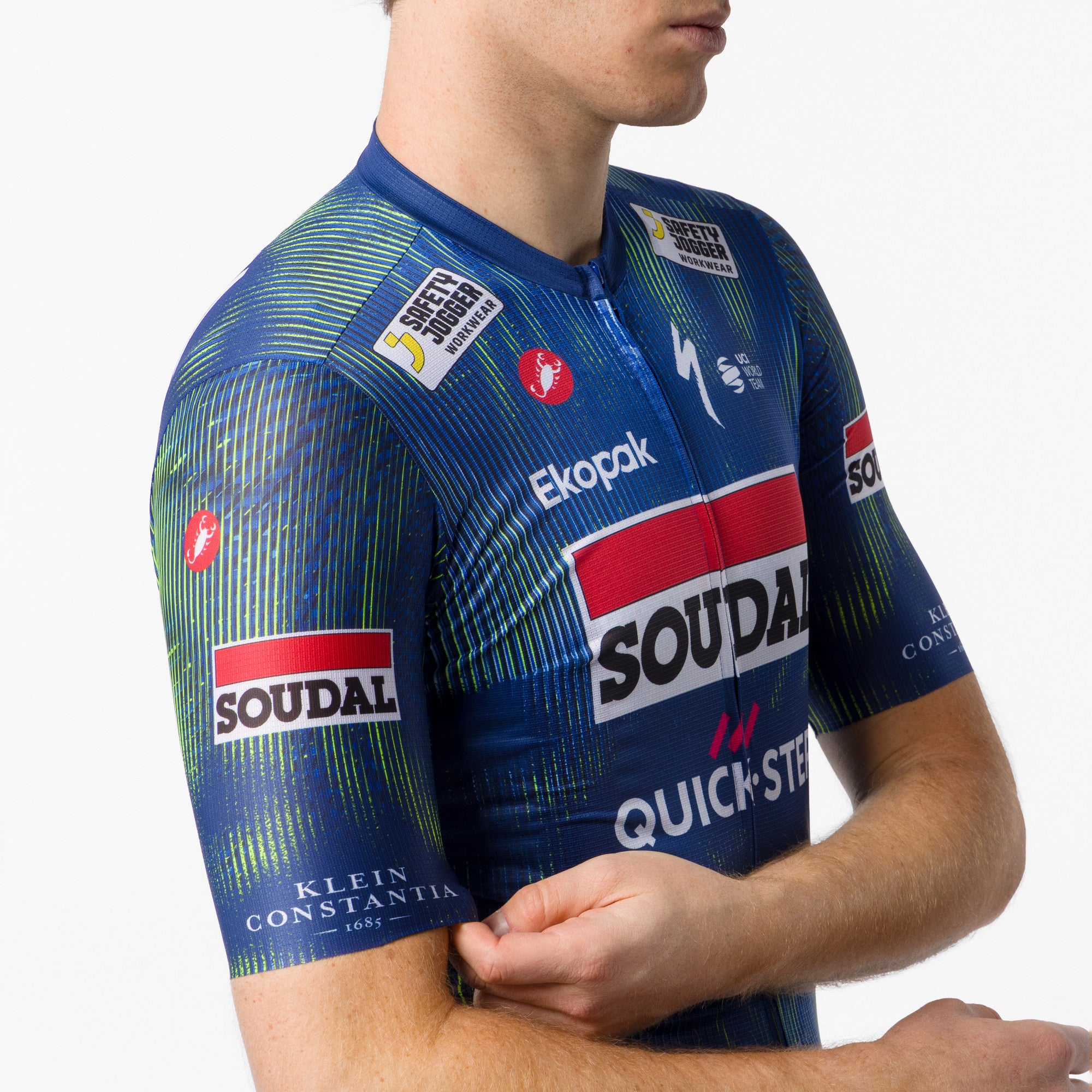The ideal all-around jersey for all your riding: it offers comfort during training and speed on fast group rides or in races. The tailored fit is not too tight, and the all over stretch fabric allows the jersey to fit all body shapes. The pockets are roomy to fit everything you need for your ride and are designed and placed for easy access on the bike. The YKK® Vislon® zipper is easy to use. This will be your go-to jersey when you want to show your support for the Soudal Quick-Step team in style.